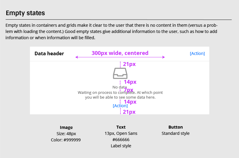 Before: The many different empty state stages; After: The definition in the design system