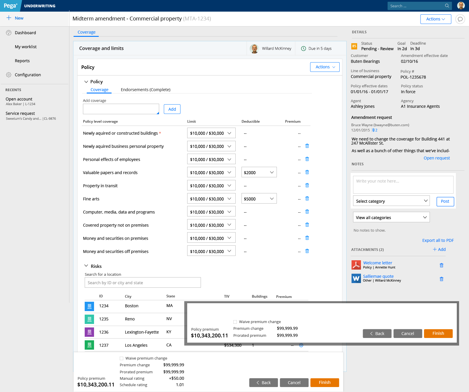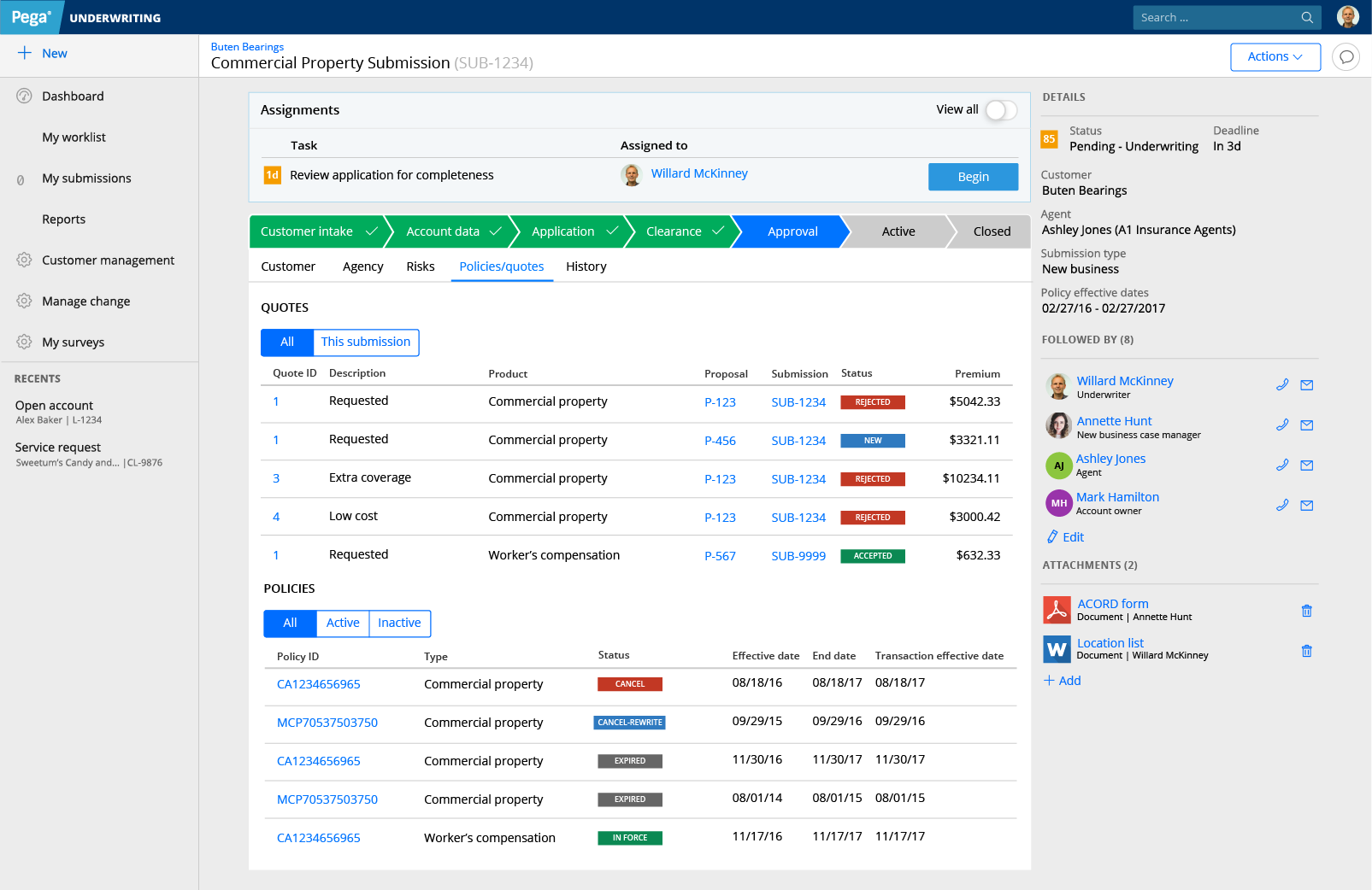 This is an application that helps insurance underwriters determine how much to charge for a specific commercial insurance policy. This particular underwriting application takes a policy submission through a large portion of the process: from initial information capture to analysis and underwriting decision making.