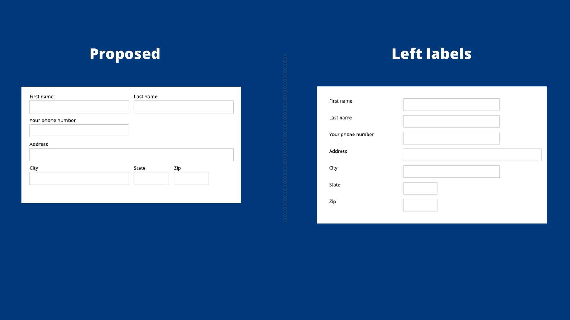 We tested six different form designs against each other, including our "proposed" design.