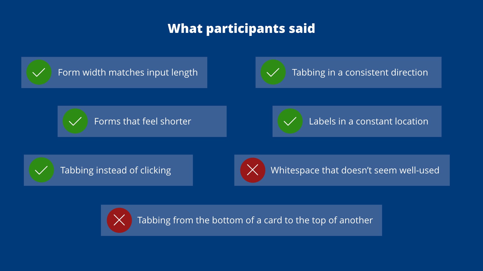 As with most research, learning more simply opens more questions. Future research could dive into regional and educational differences, or more deeply into how people get familiar with forms.