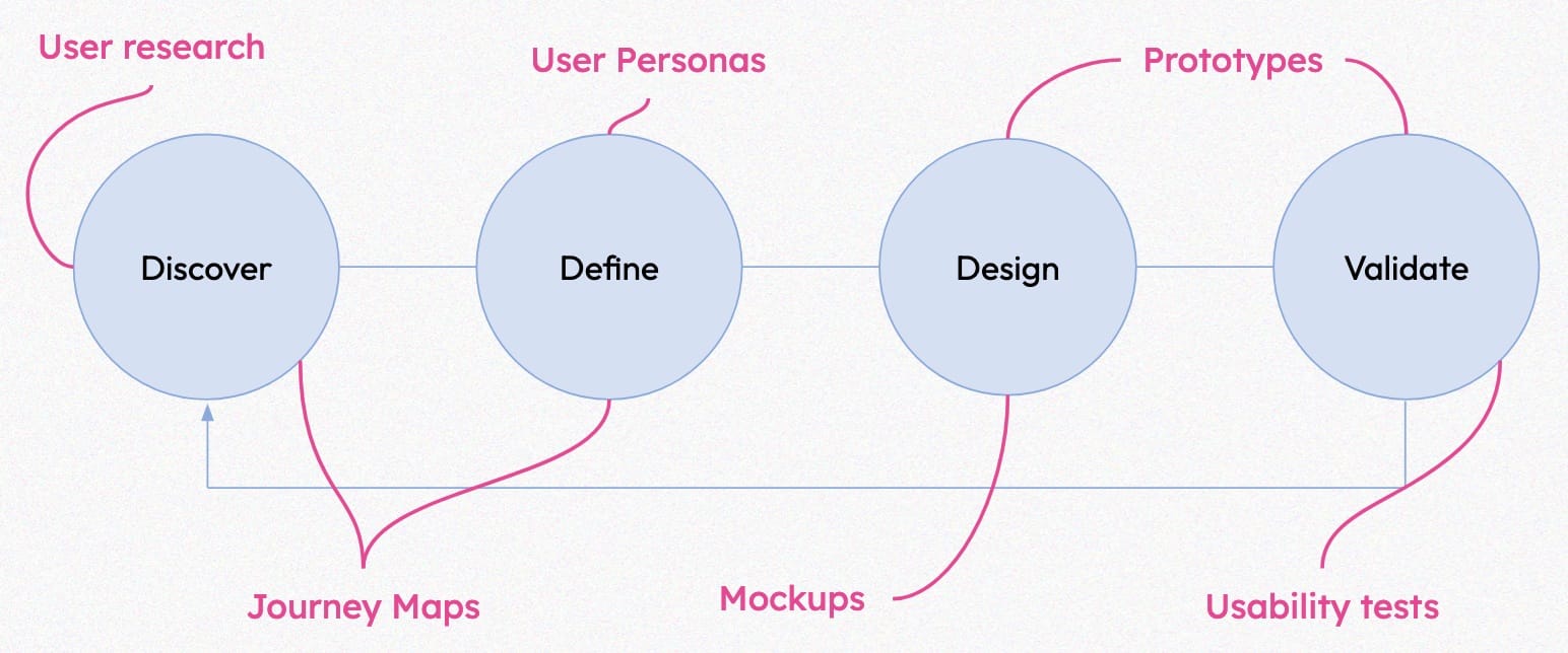 - Research can also occur after a design is made, or even after it has been developed - see more about Usability Testing below.