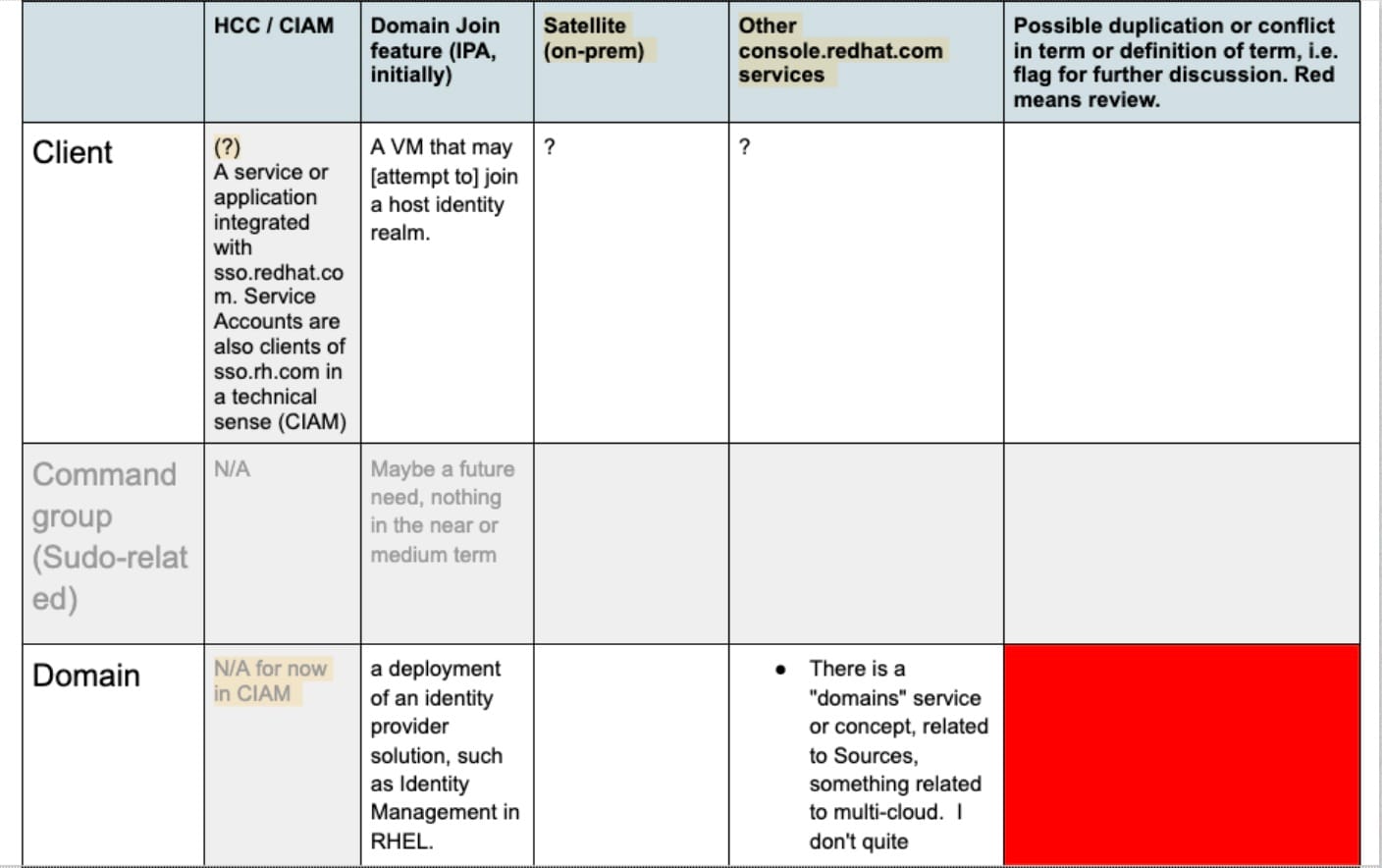 - You could use a workshop to work through any existing product & documentation and identify existing terms.