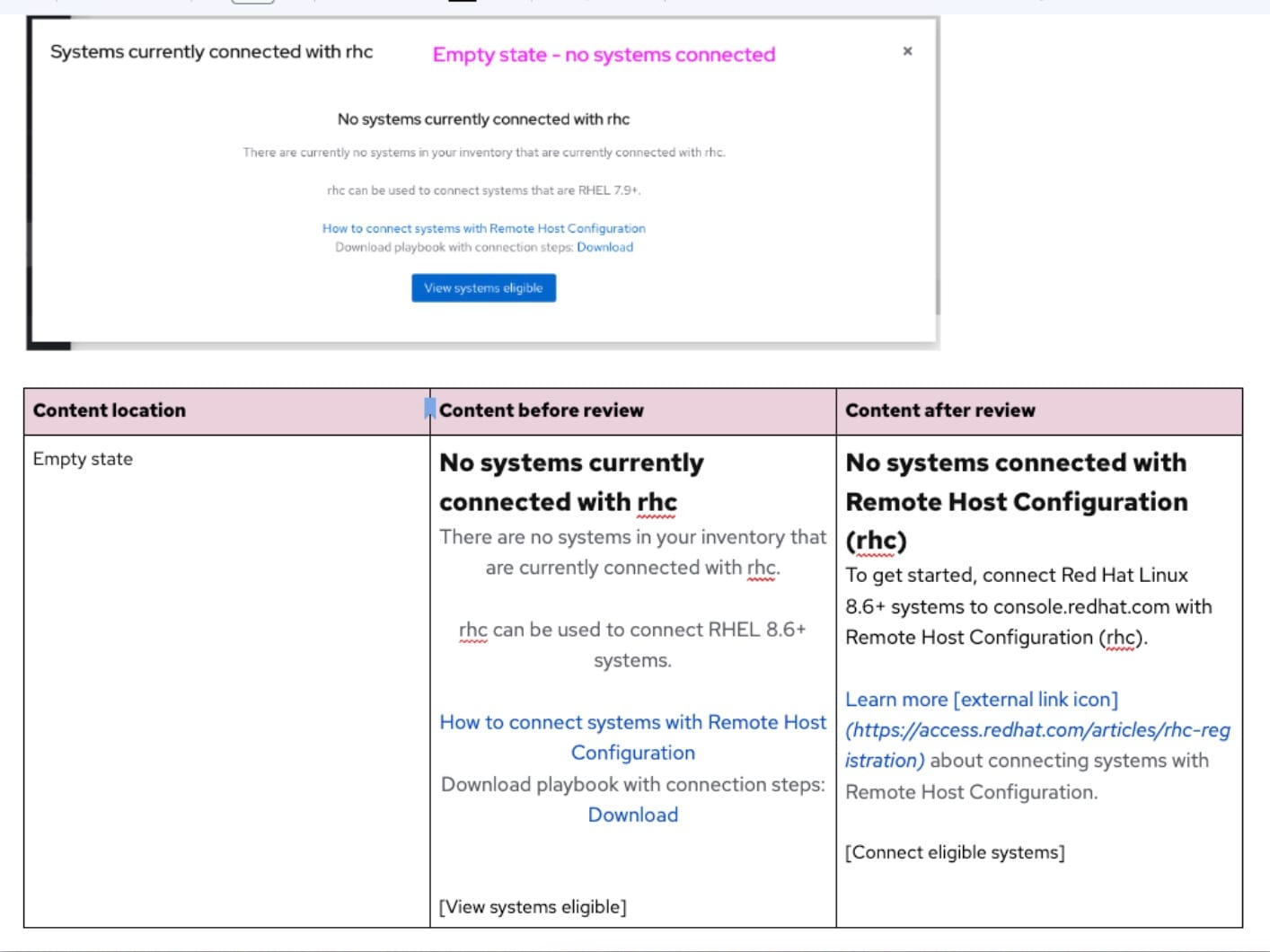- This collaboration sets up for greater alignment between the exact phrasing and words used in the microcopy and in the documentation, allowing for a more consistent experience between these two places.